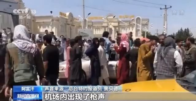 就在总台报道员拍摄过程中,现场突然传出枪声。而在喀布尔机场里,也同样出现了枪声。